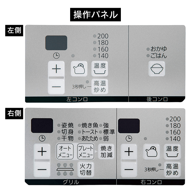 | 調理性能/コンロ | ダブル高火力&ダブルトロ火|炊飯機能※1|湯わかし機能|温調&タイマー併用 |
