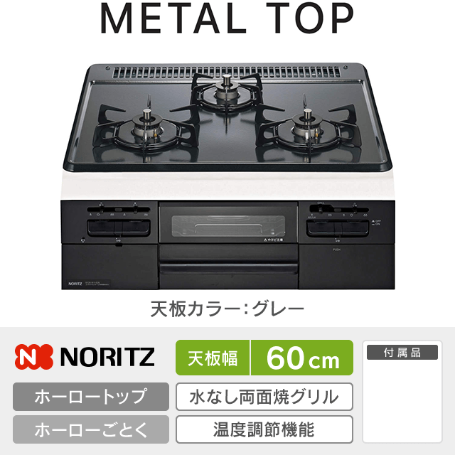 【工事費込み】N3WV5RWTQ1[幅60cm]ノーリツ ビルトインガスコンロ《メタルトップ/METALTOP》