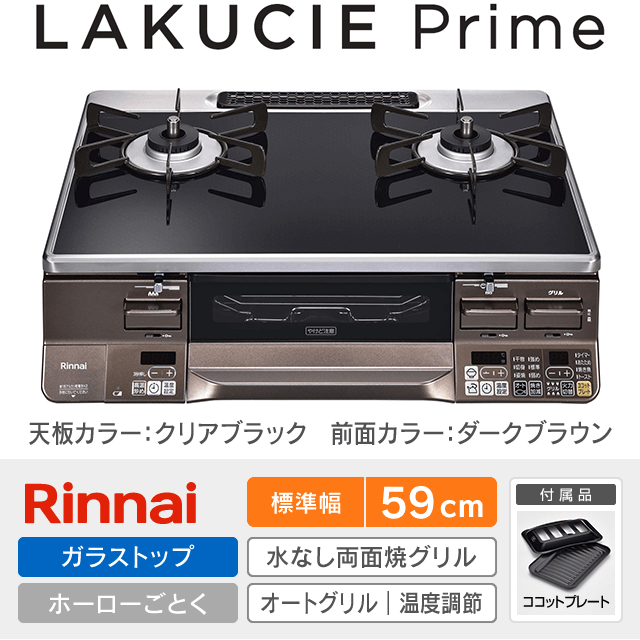 【工事費込み】リンナイ テーブルガスコンロ《ラクシエプライム/LAKUCIEPrime》[幅59cm]RTS65AWG36R2GA-DBL/R