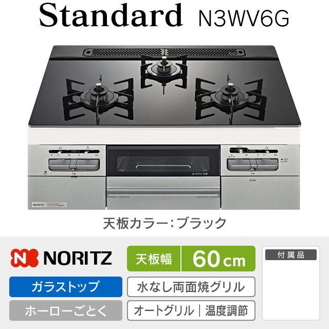【工事費込み】ノーリツ ビルトインガスコンロ《スタンダード/Standard》[幅60cm]N3WV6G