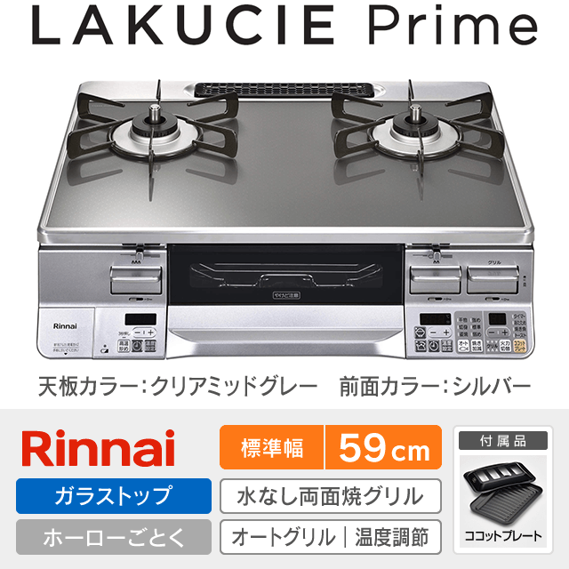 【工事費込み】リンナイ テーブルガスコンロ《ラクシエプライム/LAKUCIEPrime》[幅59cm]RTS65AWG31R2GA-VL/R