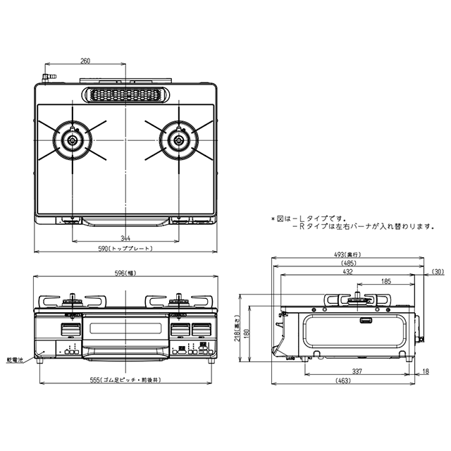 | サイズ | 高さ218×幅596×奥行き493(385)mm |