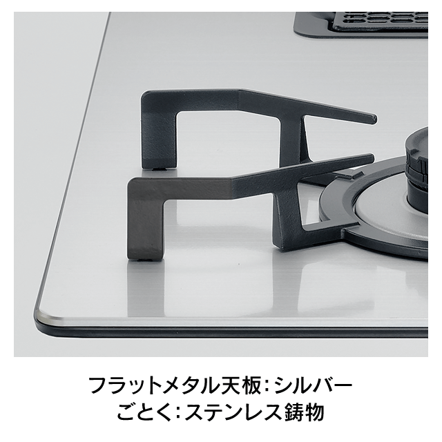 重量感のあるごとくで、大きな鍋やフライパンを置いても安心。直線的なデザインですっきりとした印象に。