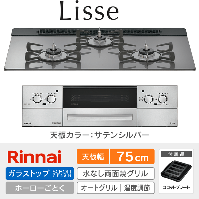 【工事費込み】リンナイ ビルトインガスコンロ《リッセ/LiSSe》[幅75cm]RHS71W42J4RSTW