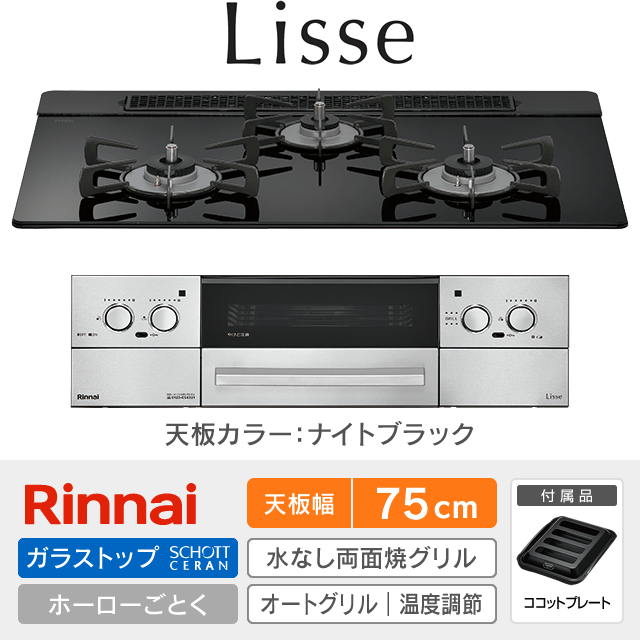 【工事費込み】リンナイ ビルトインガスコンロ《リッセ/LiSSe》[幅75cm]RHS71W42J1RSTW