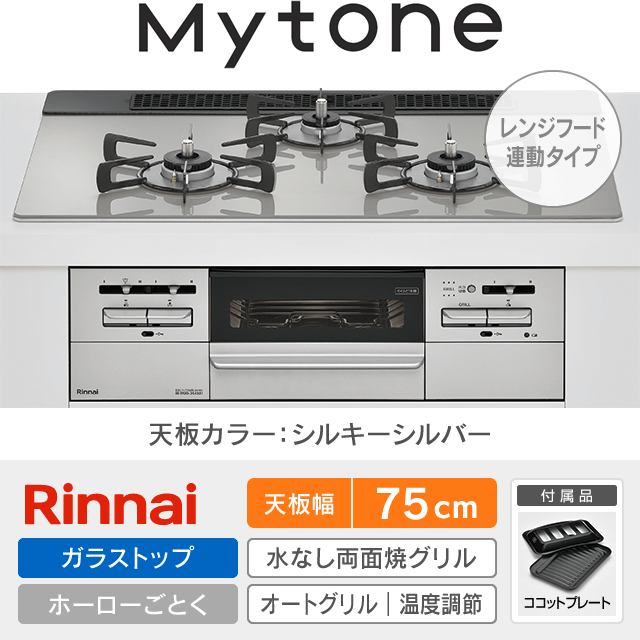 【工事費込み】リンナイ ビルトインガスコンロ《マイトーン/Mytone》[幅75cm]RHS71W35T2DGAVW