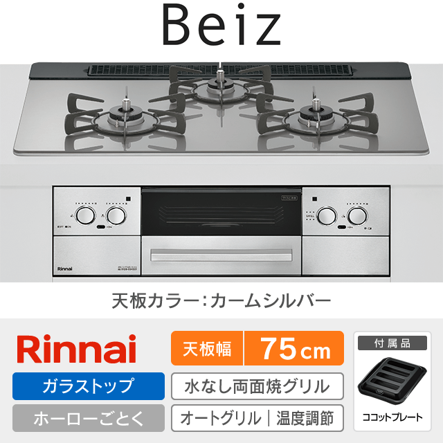 【工事費込み】リンナイ ビルトインガスコンロ《ベイズ/Beiz》[幅75cm]RHS71W33L25RGSTW