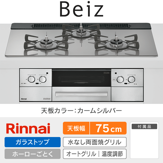 【工事費込み】リンナイ ビルトインガスコンロ《ベイズ/Beiz》[幅75cm]RHS71W33L25RSTW