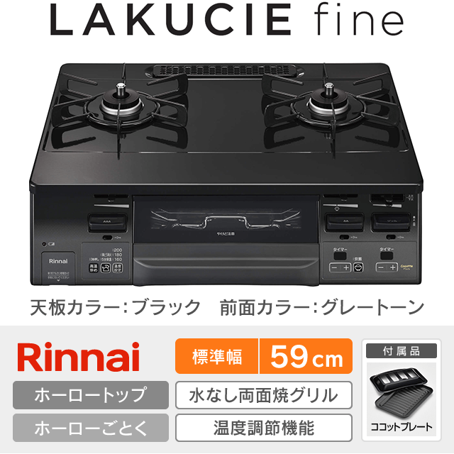 【工事費込み】リンナイ テーブルガスコンロ《ラクシエファイン/LAKUCIEfine》[幅59cm]RT66WH1RGA-BGL/R