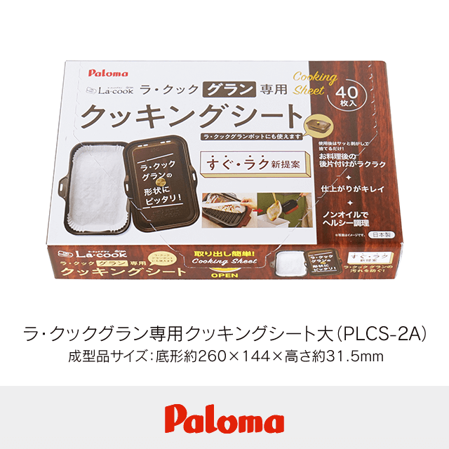 ラ・クックグラン専用クッキングシートなら、ピッタリサイズだからカットする手間もなく、すぐに使えて便利です。