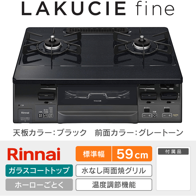 【工事費込み】リンナイ テーブルガスコンロ《ラクシエファイン/LAKUCIEfine》[幅59cm]RT66WC1RA-BGL/R