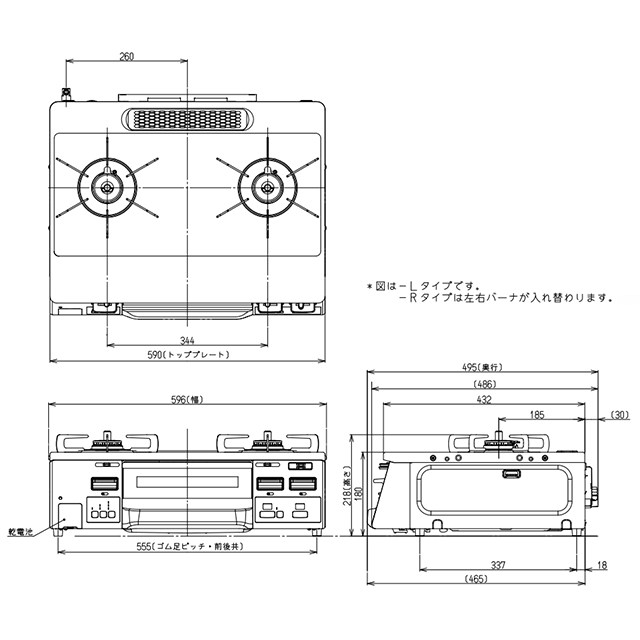 | サイズ | 高さ218×幅596×奥行き495(385)mm |
