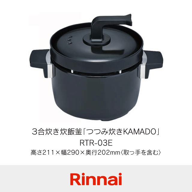 リンナイ ガスコンロ用専用調理器具「3合炊き炊飯釜/つつみ炊きKAMADO」RTR-03E
