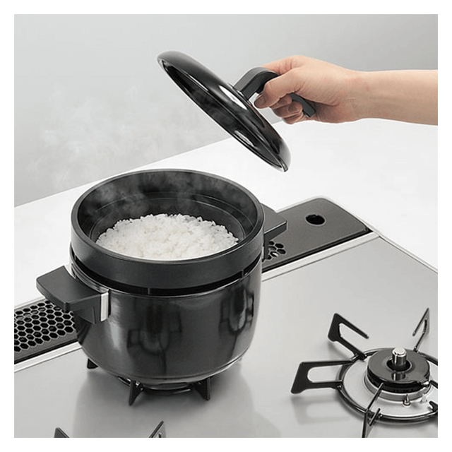 熱がムラなく伝わる「包み炊き」効果。二重構造だから、ご飯がふっくら!