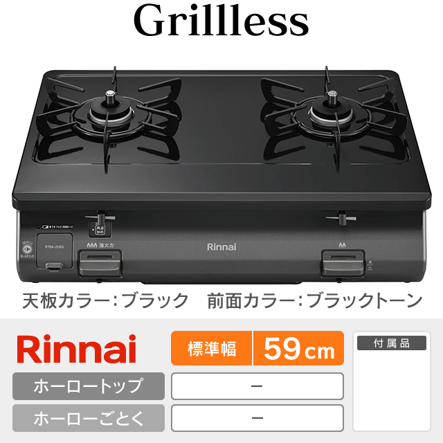 【工事費込み】リンナイ テーブルガスコンロ《グリルレス/Grillless》[幅59cm]RT64-2H6S-L/R