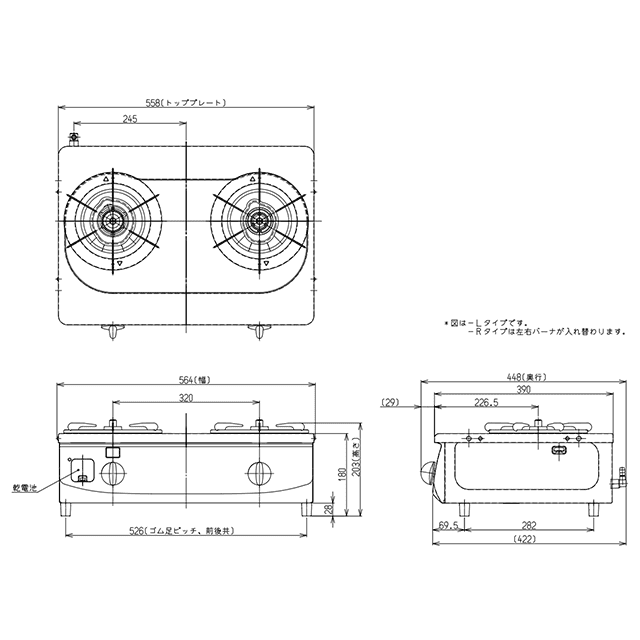 | サイズ | 高さ203×幅564×奥行き448(352.7)mm |