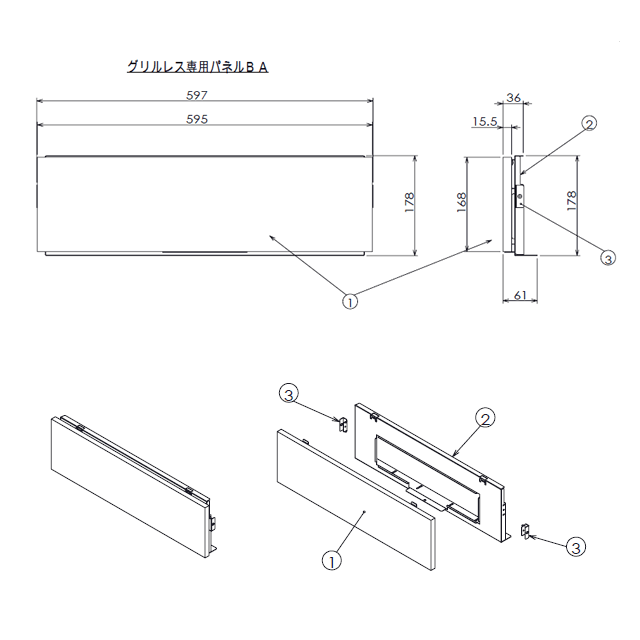 ノーリツ ガスコンロ用オプション「グリルレス専用パネルBA」DP0157BA