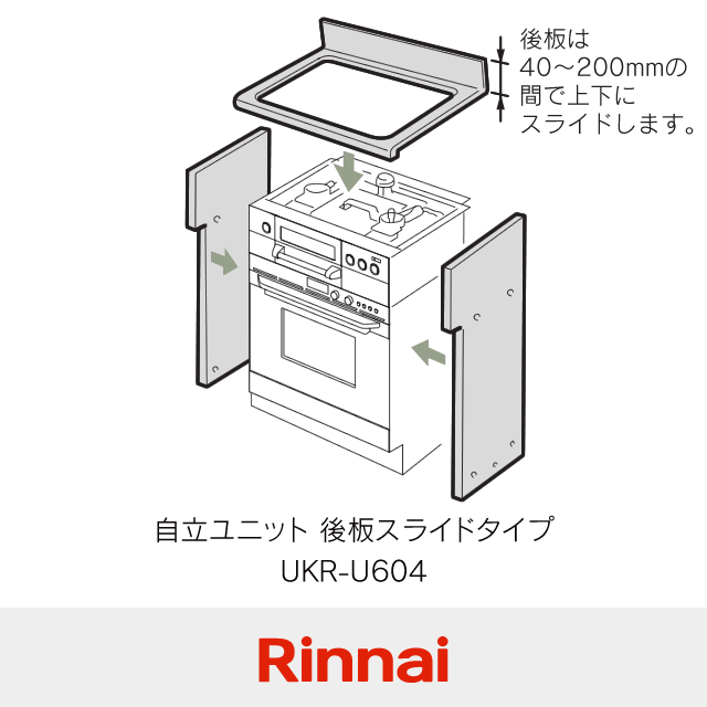 リンナイ オーブン別売部材「自立ユニット/後板スライドタイプ」UKR-U604