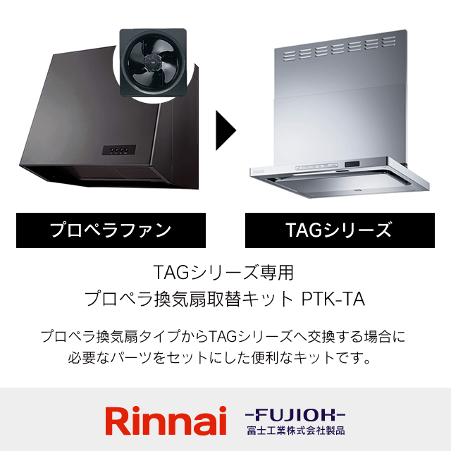 【取付費込み】リンナイ レンジフード部材「TAGシリーズ専用プロペラ換気扇取替キット」PTK-TA