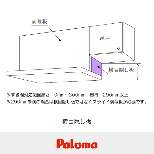 ※290mm未満の場合は横目隠し板ではなくスライド横幕板が必要です。
