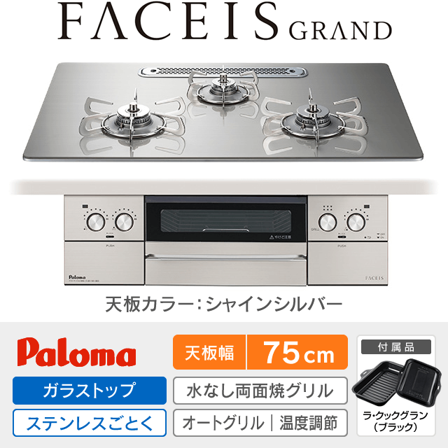 【工事費込み】パロマ ビルトインガスコンロ《フェイシスグランド/FACEISGRAND》[幅75cm]PD-893WT-U75GH