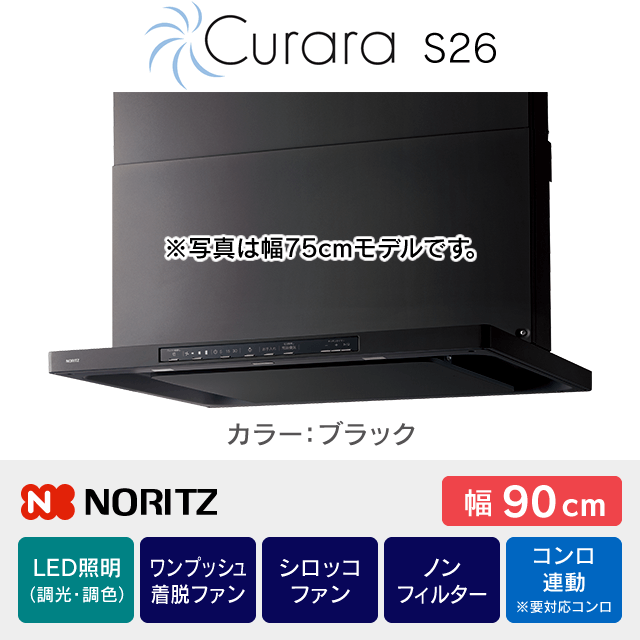 【工事費込み】レンジフード ノーリツ《クララ/CuraraS26・コンロ連動》[幅90cm]NFG9S26MBA