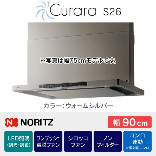 【工事費込み】レンジフード ノーリツ《クララ/CuraraS26・コンロ連動》[幅90cm]NFG9S26MWH