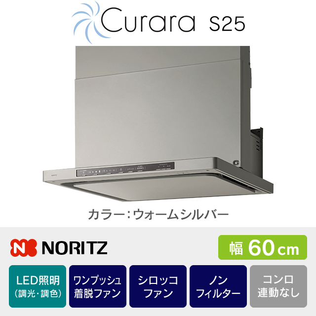【工事費込み】レンジフード ノーリツ《クララ/CuraraS25・コンロ連動なし》[幅60cm]NFG6S25MSV