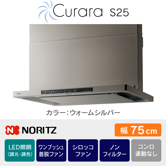 【工事費込み】レンジフード ノーリツ《クララ/CuraraS25・コンロ連動なし》[幅75cm]NFG7S25MSV