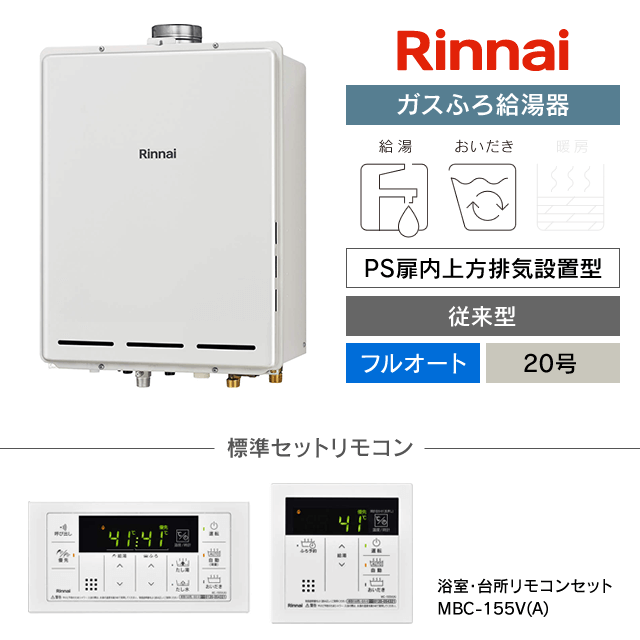 【工事費込み】RUF-A2005AU(C)|リンナイ ガスふろ給湯器|PS扉内上方排気設置型|20号|フルオート