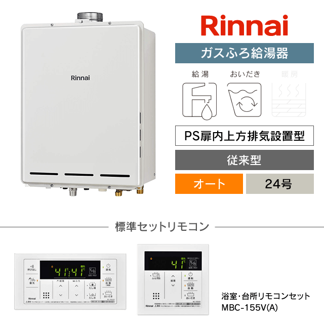 【工事費込み】RUF-A2405SAU(C)|リンナイ ガスふろ給湯器|PS扉内上方排気設置型|24号|オート