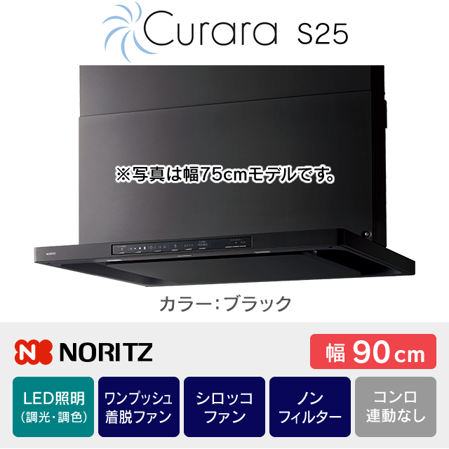 【工事費込み】レンジフード ノーリツ《クララ/CuraraS25・コンロ連動なし》[幅90cm]NFG9S25MBA