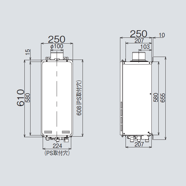 | 設置タイプ | PS扉内上方排気設置型/スリムタイプ |