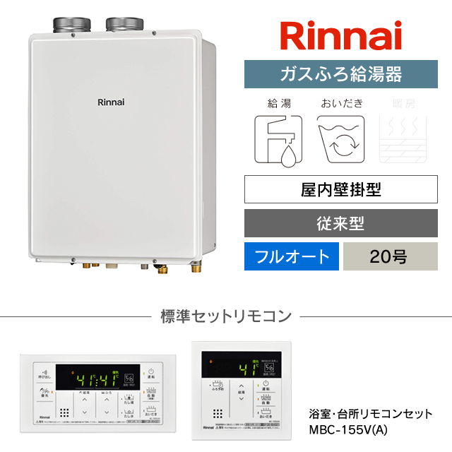 【工事費込み】RUF-V2005AFF(D)|リンナイ ガスふろ給湯器|屋内壁掛型|20号|フルオート