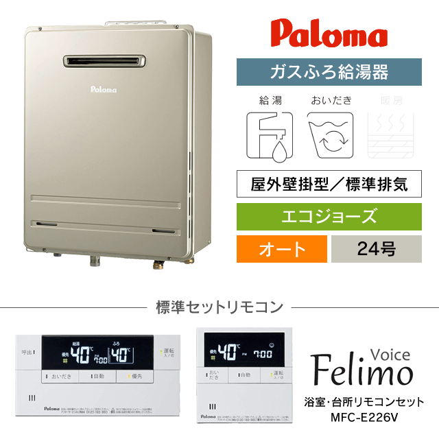 【工事費込み】FH-E2422SAWL|パロマ ガスふろ給湯器|エコジョーズ|屋外壁掛型|24号|オート