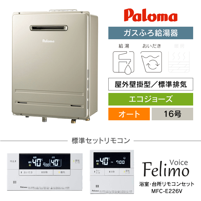 【工事費込み】FH-E1612SAWL|パロマ ガスふろ給湯器|エコジョーズ|屋外壁掛型|16号|オート