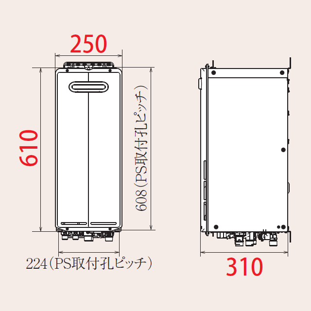 | 外形寸法 | 高さ610×幅250×奥行310mm |