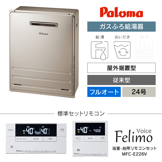 【工事費込み】FH-2423FAR|パロマ ガスふろ給湯器|屋外据置型|24号|フルオート
