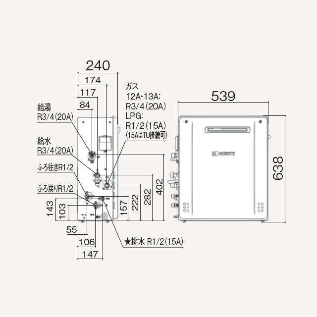 | 外形寸法 | 高さ638×幅539×奥行240mm |