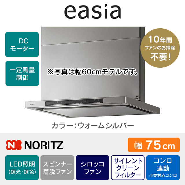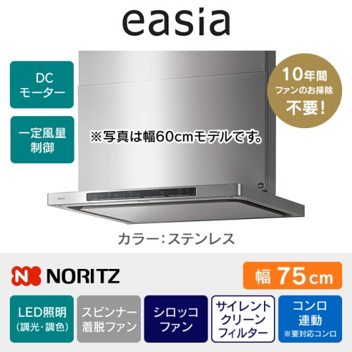 【工事費込み】レンジフード ノーリツ《イージア/easia》[幅75cm]NFG7S24MSV