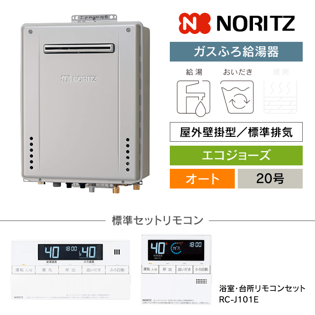 | 種類 | ガスふろ給湯器/エコジョーズ/オート |