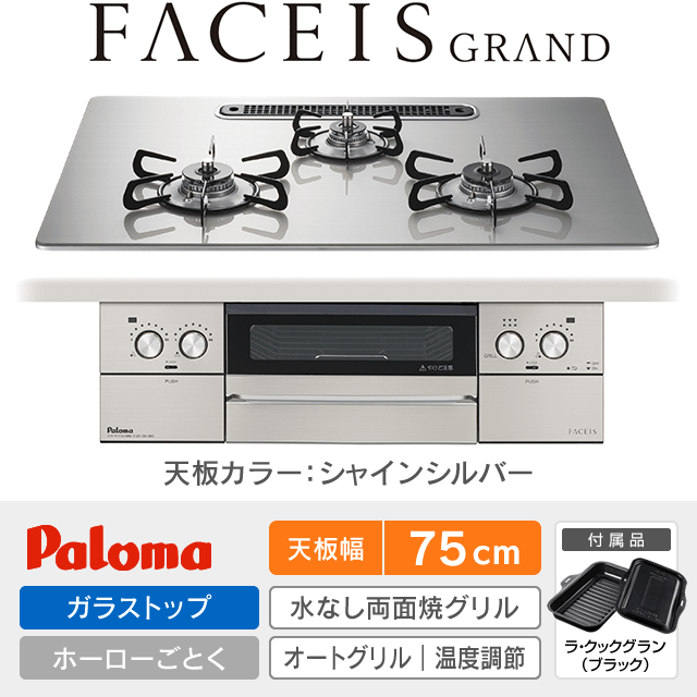 【工事費込み】パロマ ビルトインガスコンロ《フェイシスグランド/FACEISGRAND》[幅75cm]PD-893WS-U75GH