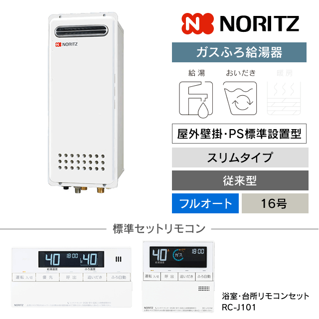 【工事費込み】GT-1653AWX-4 BL|ノーリツ ガスふろ給湯器|屋外壁掛・PS標準設置型|スリムタイプ|16号|フルオート