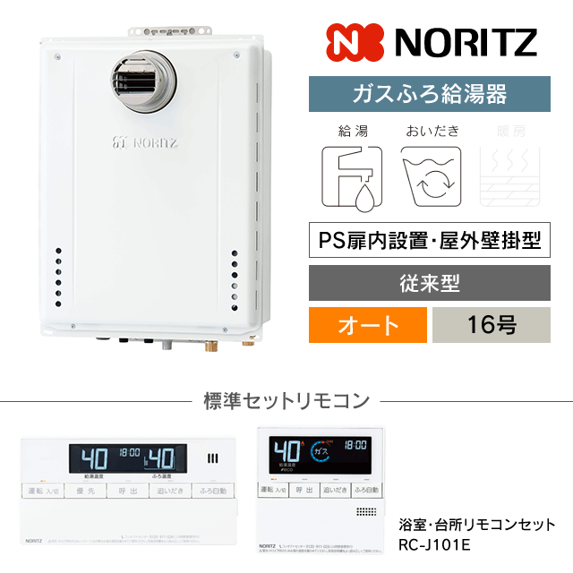 【工事費込み】GT-1670SAW-T-1 BL|ノーリツ ガスふろ給湯器|PS扉内設置・屋外壁掛型|16号|オート