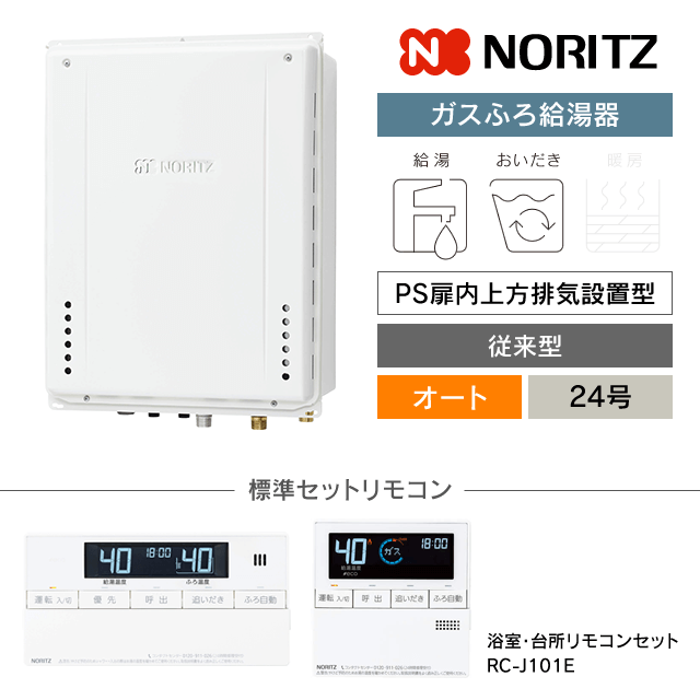| 種類 | ガスふろ給湯器/従来型/オート |