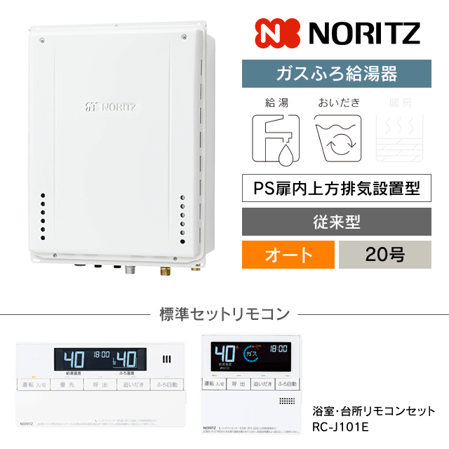 【工事費込み】GT-2070SAW-H-1 BL|ノーリツ ガスふろ給湯器|PS扉内上方排気設置型|20号|オート