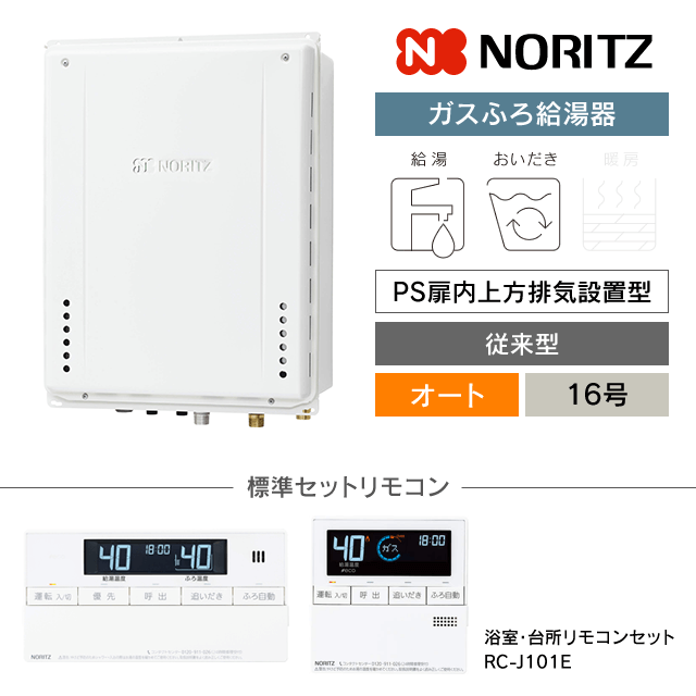 | 種類 | ガスふろ給湯器/従来型/オート |