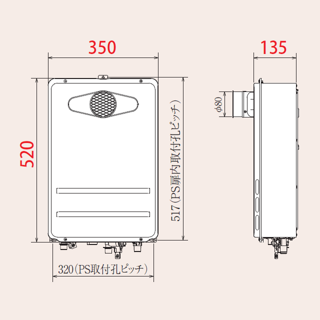 | 外形寸法 | 高さ520×幅350×奥行135mm |