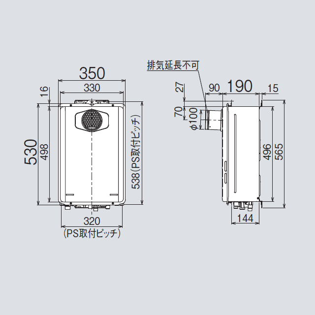 | 設置タイプ | 屋外壁掛型/丸排気 |