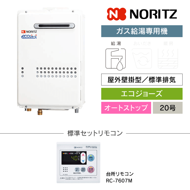 | 種類 | ガス給湯専用機/エコジョーズ/オートストップ |